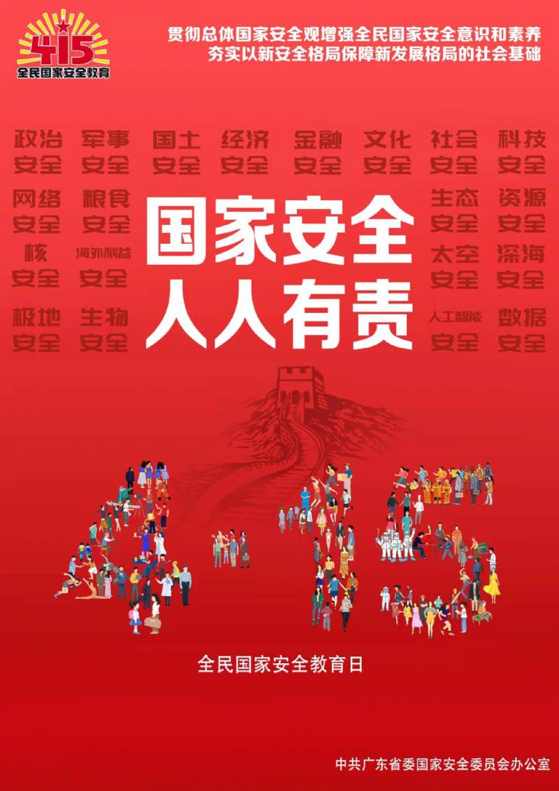 全民國家安全教育日是每年的4月15日,今年4月15日是第8個全民國家安全教育日。