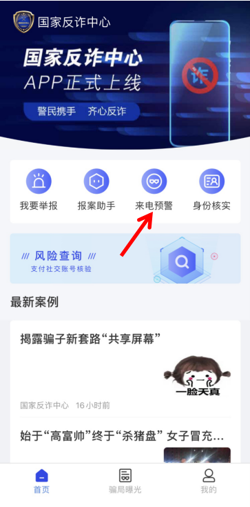 3、完成身份認(rèn)證和人臉識別后,點擊頁面上的來電預(yù)警,即可開啟全方位的詐騙預(yù)警。